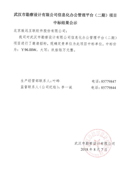 武漢市勘察設(shè)計(jì)有限公司信息化辦公管理平臺(二期)項(xiàng)目中標(biāo)結(jié)果公示