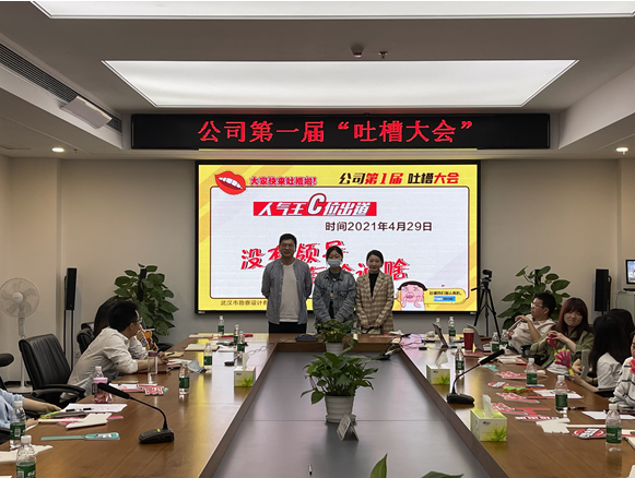 本次吐槽大會主要目的是加強公司職能部門與各生產(chǎn)部門之間的溝通交流,進一步發(fā)現(xiàn)工作中的問題,促進工作效率和工作管理水平的提升。為了本次吐槽大會開的更加接地氣,效果更佳,綜合部(黨群工作部)前期通過辦公云平臺(KC平臺)、意見箱匿名收集意見,各生產(chǎn)部門都進行了內部槽點征集、吐槽代表選派和吐槽文稿撰寫,有的甚至幾易其稿。為了增強現(xiàn)場表現(xiàn)力,相關部門內部還組織了頭腦風暴,并在網(wǎng)上搜集學習了吐槽技巧。