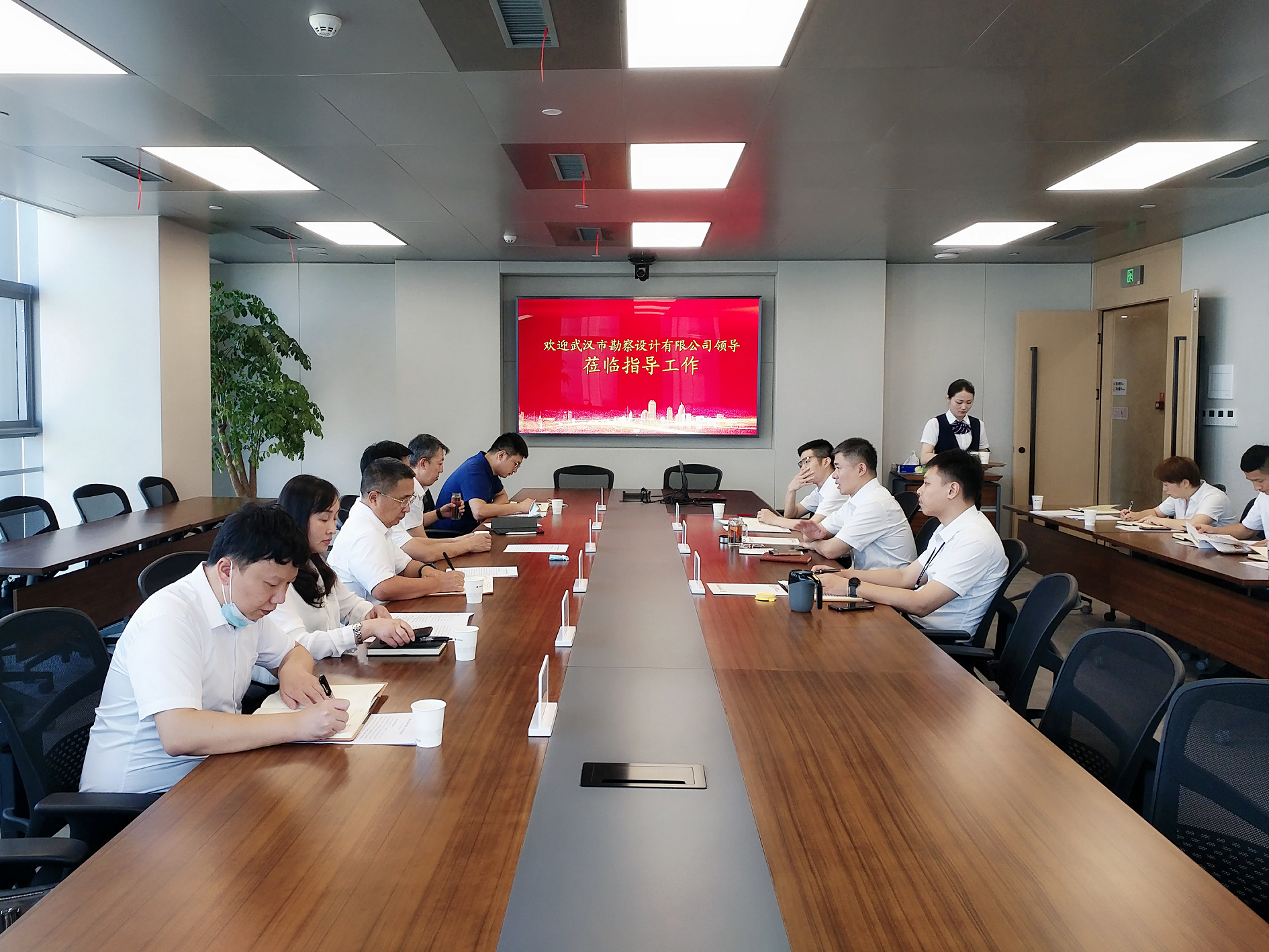 在聽取勘察公司情況介紹后,黃磊對公司一直以來提供的技術(shù)支撐及優(yōu)質(zhì)服務(wù)表示感謝。他提到,勘察公司是行業(yè)佼佼者,擁有強(qiáng)大的技術(shù)實力和人才優(yōu)勢,具備優(yōu)良的市場意識和服務(wù)品質(zhì),參與了眾多重大項目的勘察設(shè)計等技術(shù)服務(wù)工作,有著良好的業(yè)界口碑。他希望,勘察公司能依托自身優(yōu)勢,積極參與武漢市城市更新相關(guān)工作,共同為集團(tuán)發(fā)展和武漢城市建設(shè)出謀劃策、做出貢獻(xiàn)。