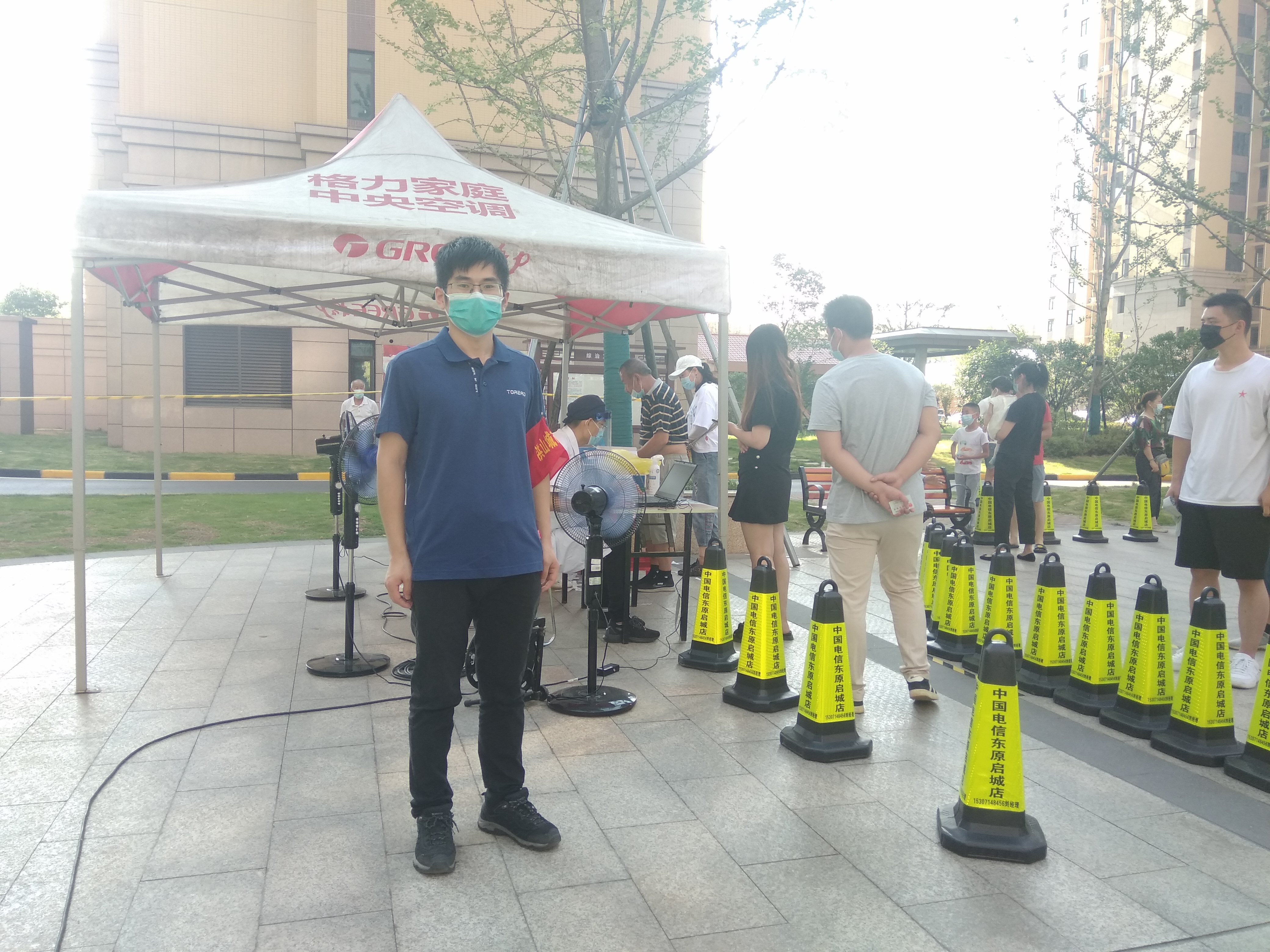 8月4日,公司黨員謝朋、蔣屹早上6:30便已到達社區(qū)統(tǒng)一安排的崗位上開始工作。據(jù)了解,勝利社區(qū)共有1998戶住戶,為避免人員密集,社區(qū)在全社區(qū)設置了3個核酸檢測點,分時分批組織居民檢測。“請大家戴好口罩,保持好安全距離!”“請有序排隊等待檢測,如有身體不適,請盡快聯(lián)系志愿者!”在炎炎夏日的高溫下,黨員們耐心地向社區(qū)居民告知注意事項,維護好現(xiàn)場秩序,組織登記、測量體溫,每時段檢測完成后及時疏散,確保核酸檢測安全、有序進行。通過一天的努力,勝利社區(qū)3個核酸檢測點分別檢測442人、479人、388人,共計1309人。