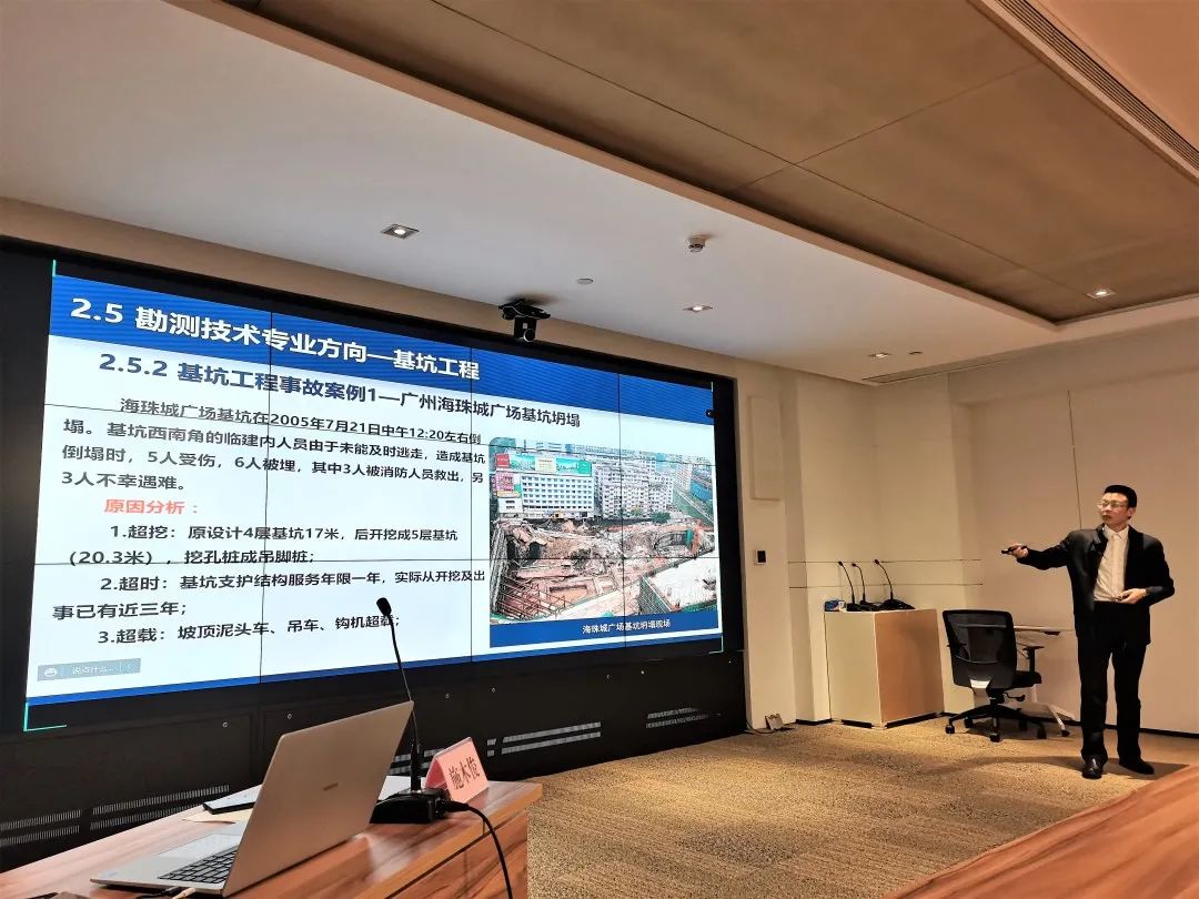 授課進(jìn)入尾聲時(shí),施木俊重點(diǎn)推介了公司在行業(yè)發(fā)展,企業(yè)管理上的優(yōu)勢(shì):在勘測(cè)與巖土工程專(zhuān)業(yè)領(lǐng)域,武勘公司能為工程建設(shè)項(xiàng)目的策劃階段提供最優(yōu)解,能精準(zhǔn)把控工程全過(guò)程風(fēng)險(xiǎn),實(shí)現(xiàn)項(xiàng)目風(fēng)險(xiǎn)、經(jīng)濟(jì)與時(shí)間相平衡;已積累的分布在武漢各地?cái)?shù)十萬(wàn)的鉆孔資料和已建設(shè)的數(shù)據(jù)管理平臺(tái),為項(xiàng)目開(kāi)發(fā)初期高效準(zhǔn)確進(jìn)行成本、工期預(yù)估提供了重要基礎(chǔ)資源;現(xiàn)有的智慧監(jiān)測(cè)平臺(tái)及自動(dòng)運(yùn)行的測(cè)量機(jī)器人讓項(xiàng)目建設(shè)與運(yùn)行維護(hù)一切盡在掌握;管理信息化更是成為了打破深井,為企業(yè)發(fā)展賦能的重要手段。