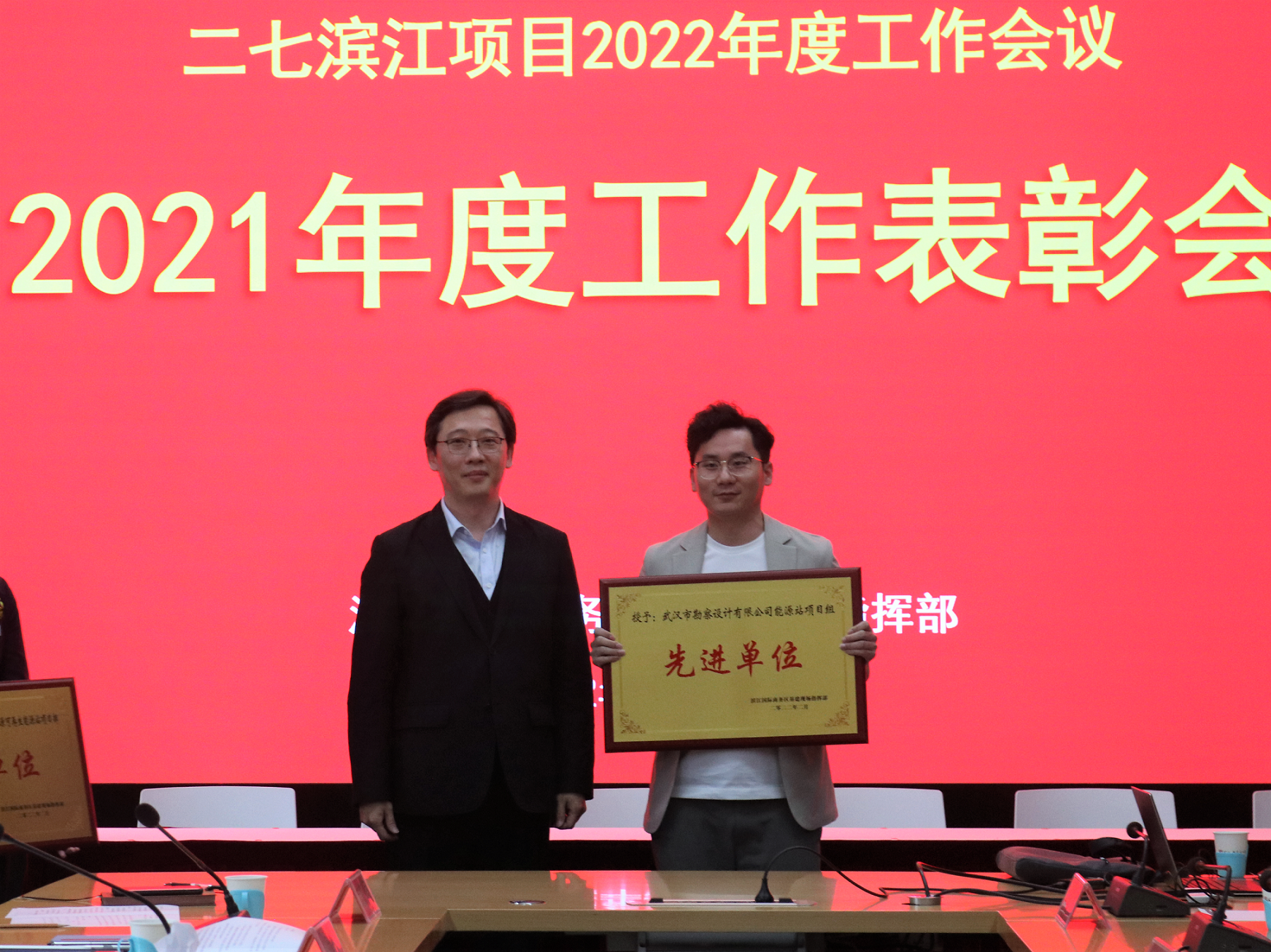 會(huì)議對(duì)商務(wù)區(qū)基礎(chǔ)設(shè)施建設(shè)2021年度總體工作進(jìn)行了總結(jié),各項(xiàng)目公司、設(shè)計(jì)聯(lián)盟、施工項(xiàng)目部分別對(duì)2021年度工作進(jìn)行了總結(jié)匯報(bào),并簽訂了2022年度項(xiàng)目建設(shè)目標(biāo)責(zé)任書(shū)。會(huì)議還對(duì)2021年度項(xiàng)目先進(jìn)單位和優(yōu)秀分包隊(duì)伍進(jìn)行了表彰,由公司所屬檢測(cè)監(jiān)測(cè)公司派出的江水源能源站項(xiàng)目組,喜獲二七濱江商務(wù)區(qū)2021年度項(xiàng)目“先進(jìn)單位”殊榮。