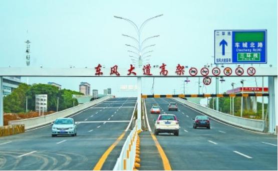 9月20日下午2點(diǎn),東風(fēng)大道高架二期向社會(huì)車輛開(kāi)放,至此,東風(fēng)大道高架全線通車。