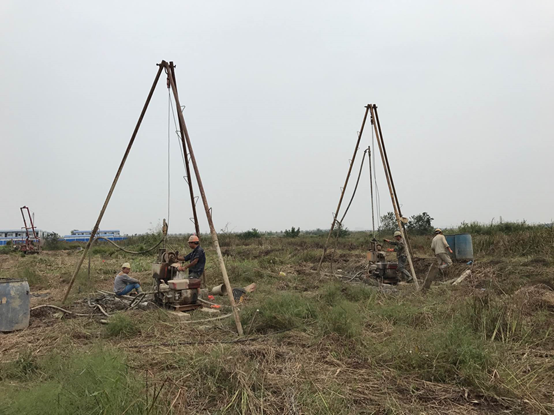 本工程勘探工作量大,任務(wù)重,勘察范圍基本為原始地貌,涉及大片灌木叢及大片藕塘,施工環(huán)境非常復(fù)雜,再加上臨近十一國慶假日,鉆探工作人員心思有所松懈,種種困難給外業(yè)工作帶來了巨大挑戰(zhàn)。面對困難,項目成員積極開展協(xié)調(diào)工作,調(diào)配挖機快速清理場地解決進(jìn)場施工難題;公司專業(yè)總工對外業(yè)生產(chǎn)進(jìn)行現(xiàn)場技術(shù)指導(dǎo),為項目的順利開展提供了強有力的技術(shù)支撐;開工前對現(xiàn)場鉆探人員進(jìn)行了技術(shù)交底、環(huán)安教育及思想工作,節(jié)假日期間項目成員及鉆探人員堅守崗位,加班加點,保證外業(yè)進(jìn)度的同時,也不懈怠安全生產(chǎn)及質(zhì)量把控,使得勘察工作有條不紊的進(jìn)行。