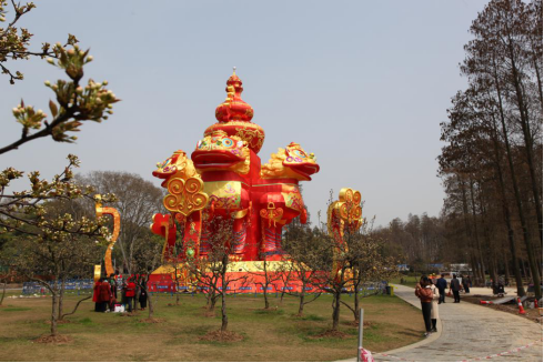 2018年東湖燈會于2月23日至3月31日在武漢市東湖聽濤風景區(qū)梨園舉辦。自開幕以來,燈組“雄獅賀歲”一直備受關(guān)注,多次在各大電視欄目以及報紙頭版刊發(fā),“雄獅賀歲”燈組構(gòu)圖有創(chuàng)意,以四面雄獅為設(shè)計主體,周圍環(huán)繞著6柄玉如意,燈組頂端是一個和平寶尊,寓意世界太平、吉祥如意。