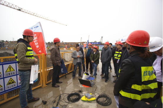 2018年11月19日下午,在公司副總經(jīng)理兼總工程師官善友的帶領(lǐng)下,綜合部、技術(shù)質(zhì)量安全部、檢測(cè)監(jiān)測(cè)公司、基礎(chǔ)工程公司、設(shè)計(jì)中心、土工試驗(yàn)室等部門(mén)技術(shù)骨干,來(lái)到北湖污水處理廠深隧泵房項(xiàng)目施工現(xiàn)場(chǎng),觀摩學(xué)習(xí)了聲納滲流檢測(cè)技術(shù),同行還有武漢地鐵集團(tuán)有限公司、鐵四院、中鐵大橋局等同行業(yè)的專(zhuān)家和技術(shù)骨干人員。