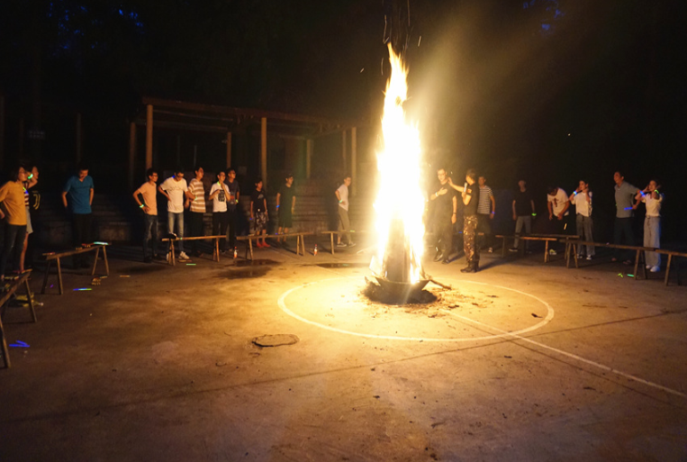簡(jiǎn)單的軍訓(xùn)結(jié)束后,拓展活動(dòng)隨即拉開帷幕,教練向大家詳細(xì)講解了本次拓展活動(dòng)的要求和具體規(guī)則,以輕松有趣的熱身方式對(duì)隊(duì)員進(jìn)行了分組,分別制定了隊(duì)名及口號(hào),并進(jìn)行了團(tuán)隊(duì)建設(shè)、團(tuán)隊(duì)融合和團(tuán)隊(duì)展示。在5名教練的指導(dǎo)下,隊(duì)員們攻堅(jiān)克難,不斷挑戰(zhàn)自我、突破自我,先后完成了“風(fēng)雨戰(zhàn)士”、“信任背摔”、“穿越電網(wǎng)”等團(tuán)隊(duì)游戲。活動(dòng)中,各隊(duì)隊(duì)員全心投入,充分調(diào)動(dòng)自己的靈感和創(chuàng)造性,積極獻(xiàn)言獻(xiàn)策,協(xié)作完成了項(xiàng)目設(shè)置的層層挑戰(zhàn),掌聲、笑聲和歡呼聲此起彼伏。當(dāng)晚,一場(chǎng)精彩的篝火晚會(huì)在月夜下拉開帷幕,隊(duì)員們手拉手圍著篝火,隨音樂(lè)起舞。來(lái)自各部門的“文藝骨干”即興表演,引得掌聲不斷,歡呼不歇。