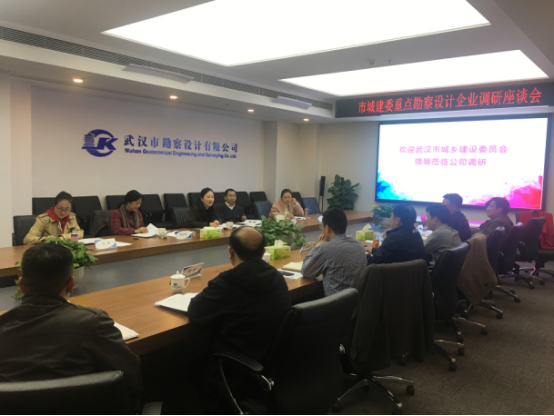 為全面了解武漢市勘察設(shè)計(jì)企業(yè)經(jīng)營狀況,切實(shí)掌握企業(yè)運(yùn)行情況,更好的為企業(yè)發(fā)展服務(wù),3月16日下午,市城建委林琨副主任、設(shè)計(jì)處徐海清處長、設(shè)計(jì)之都發(fā)展中心(審查辦)胡華瑩副主任、海管辦劉婕科長、節(jié)能處明珊科長赴我司進(jìn)行了考察調(diào)研。市測繪院肖建華...